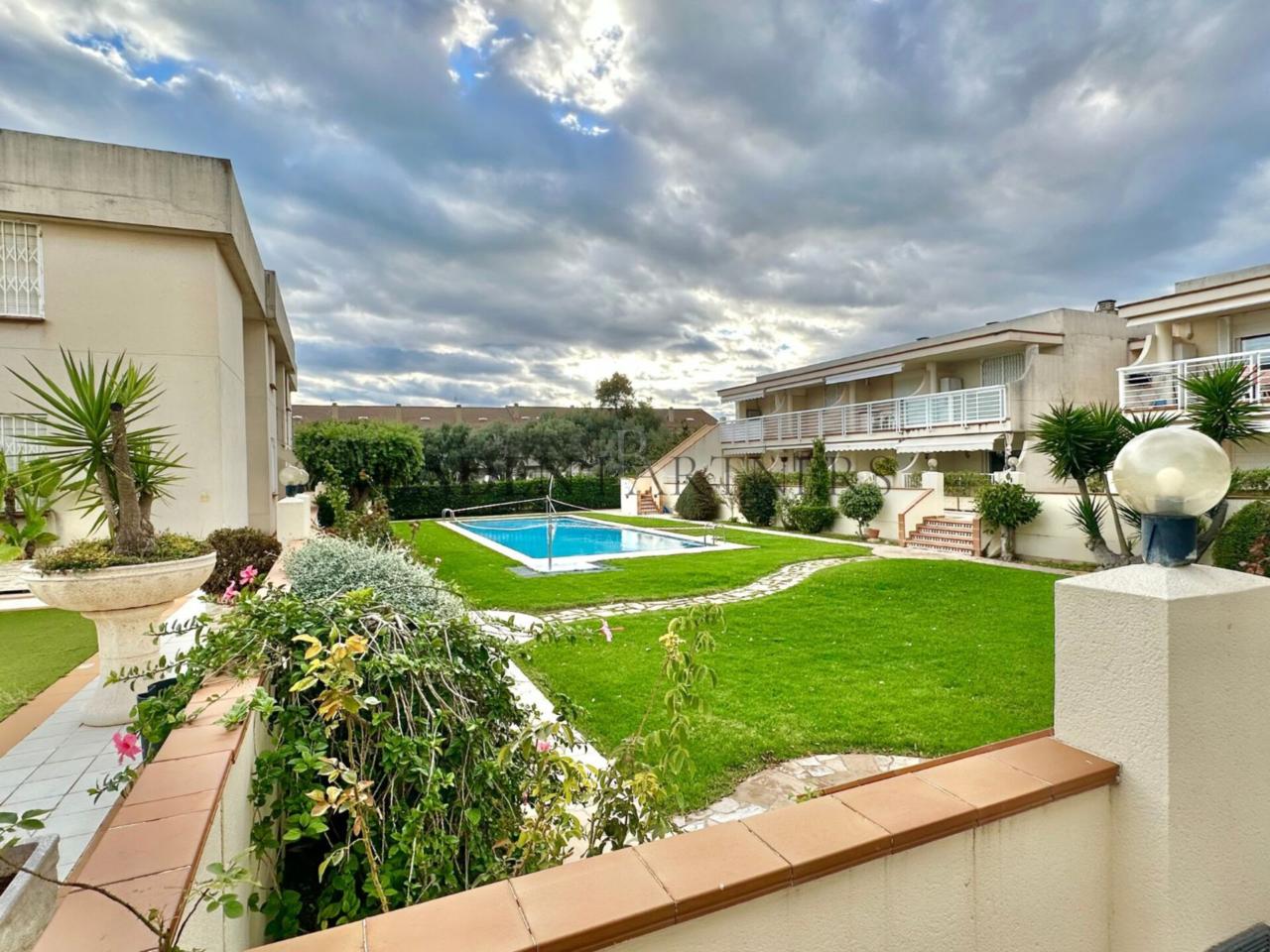 Desde la terraza se accede directamente a las zonas comunes: un solárium cuidado, jardines con mantenimiento diario (jardinero 8h) y una gran piscina comunitaria. Además, la vivienda incluye plaza de parking dentro de la comunidad privada, lo que añade comodidad y seguridad. Además, tiene una zona habilitada para hacer otra habitación, con separador retractil.