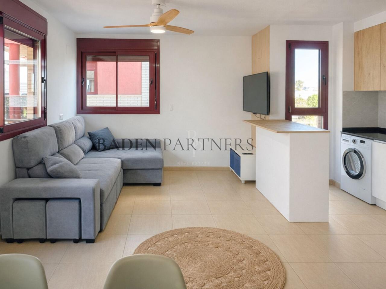 La vivienda cuenta con 75 m² construidos y se distribuye en dos habitaciones dobles con armarios empotrados, un baño completo, y un salón comedor con cocina integrada. Todo el piso es exterior y gracias a su orientación sureste, recibe luz natural durante todo el día, creando un ambiente cálido y agradable. La terraza, amplia y cómoda, es perfecta para disfrutar del sol o compartir comidas al aire libre.