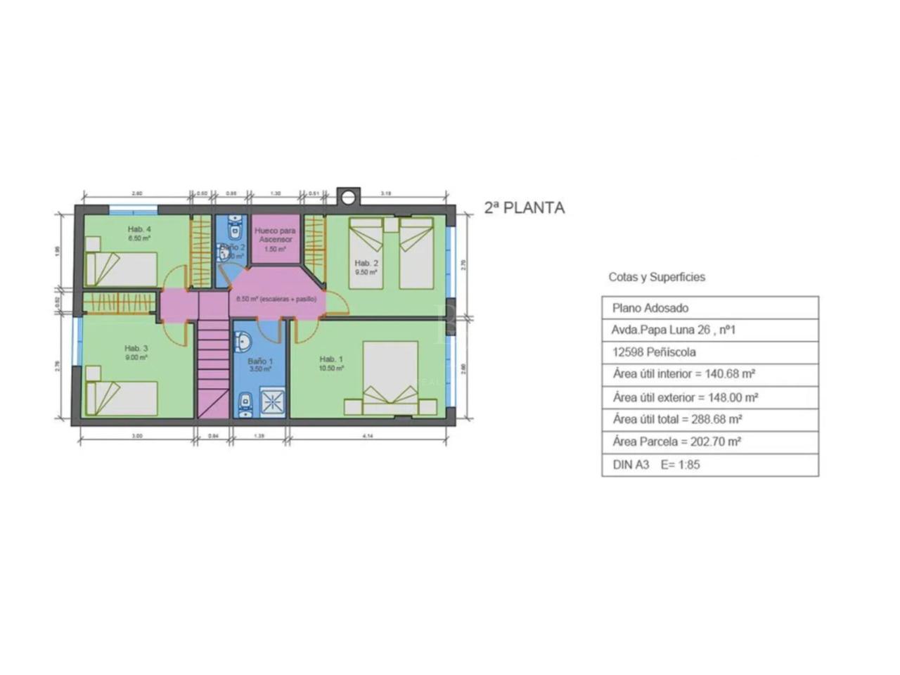 La planta superior alberga cuatro dormitorios, todos exteriores y con vistas, además de dos baños, uno de ellos con plato de ducha. Ventiladores de techo en todas las habitaciones y en la cocina garantizan una temperatura agradable durante los meses más cálidos.
