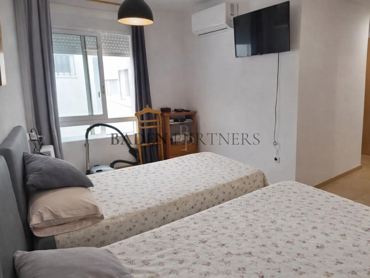 Dispone de tres habitaciones (una doble y dos individuales), todas con armarios empotrados, además de dos baños completos, uno de ellos en suite. El suelo de parquet aporta calidez, y el aire acondicionado en salón y dormitorio principal asegura confort en los meses más cálidos.